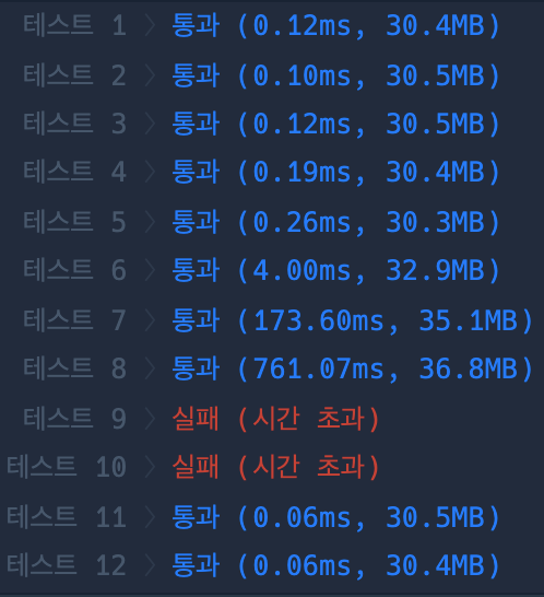 하지만 테스트 코드 10번을 계속 실패하였다.