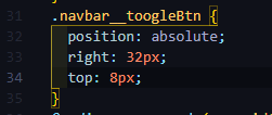 css로 돌아가서 position : absolute를 통해 햄버거의 절대 위치를 정의하고,