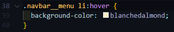 navbar__menu li:hover {}이며, background-color : 원하는 색을 통해 색을 변경한다.
