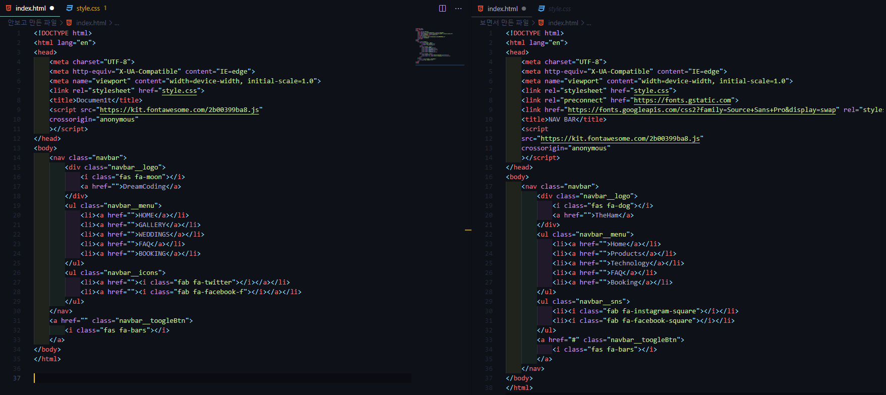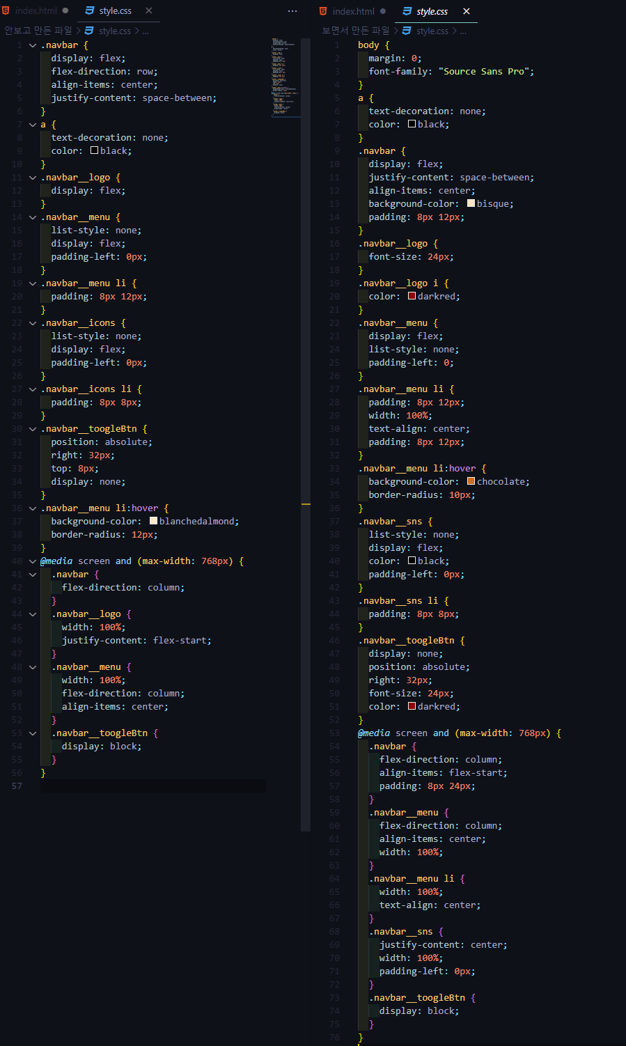 이제 영상을 보고 짠 코드와 안 보고 짠 코드를 비교해보겠다.